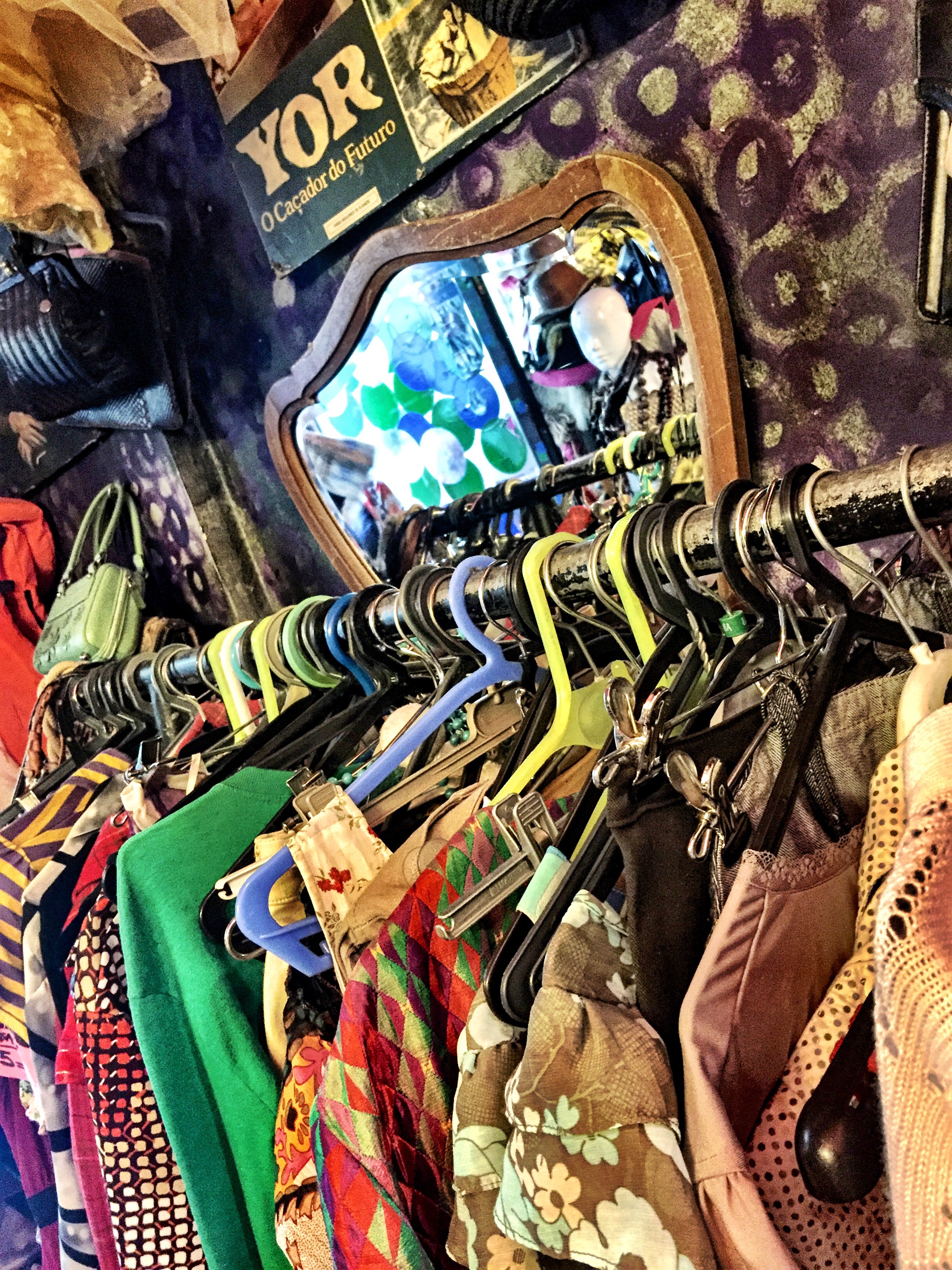Fatima’ s store, now at Rua Formosa, is curated to the T. Curated for each individual that crosses her door and shares her love for detail and her passion for clothes with history ready to be used in new life stories. Curated for treasure hunters who enjoy the apparent chaos of the hundreds of scarves and necklaces and dresses and sequined tops and ruffles and leopard prints and stuffed animals and the old movie advertising posters bought from Orion.